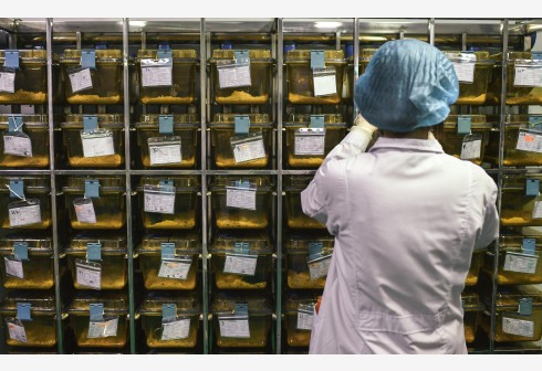 廣東省人民醫(yī)院藥師遵照醫(yī)囑核對抗癌藥物(7月19日攝)。