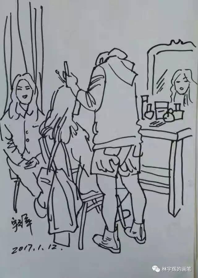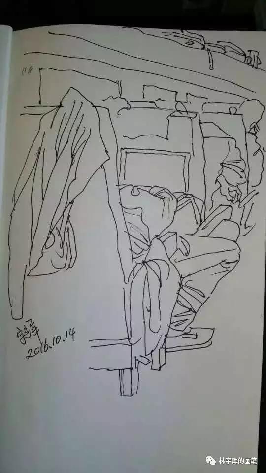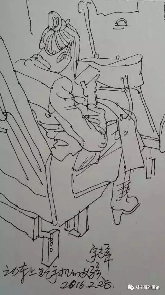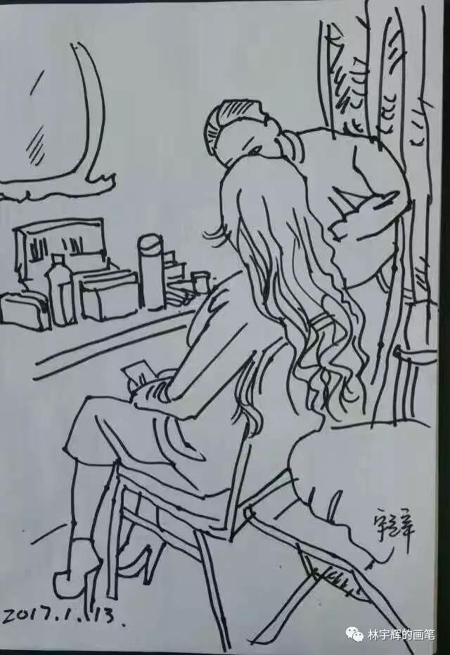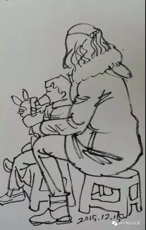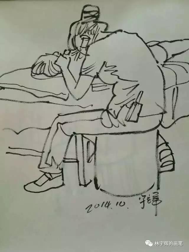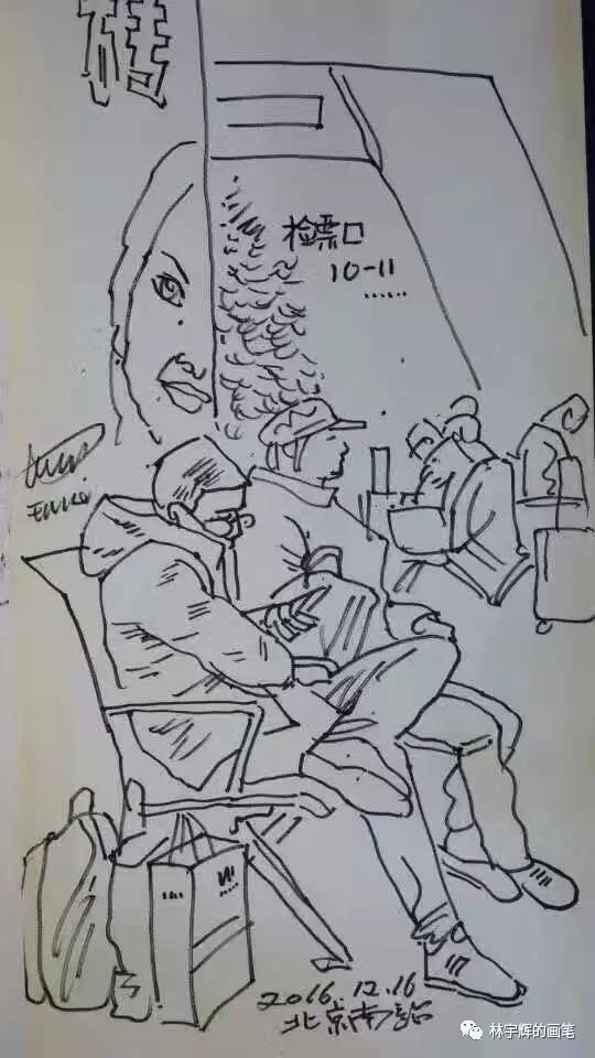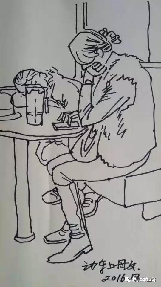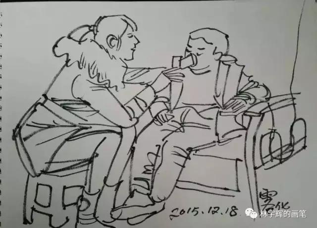 林宇輝警官不論走到哪里,都隨身帶著速寫本和畫筆。哪怕是停車等紅燈的時間,也要拿出來畫上幾筆。這因為如此,才練就了如此傳神的畫筆。借著今天的分享,大家可以感受一下。不論是在火車上、醫院里、飯店里、理發店、火車站,林警官無時無刻的筆耕不輟,用畫筆記錄著身邊的點點滴滴。