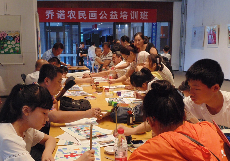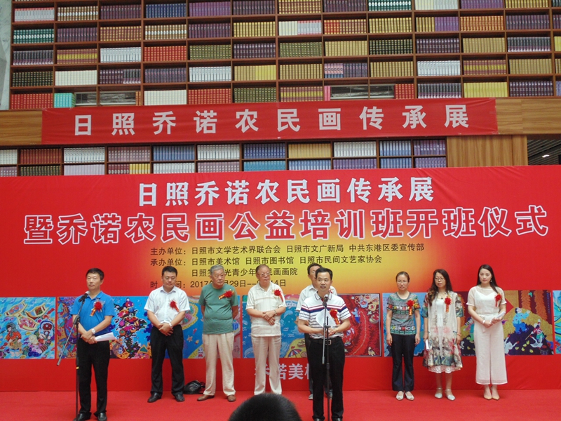2017年7月29日“日照喬諾農(nóng)民畫(huà)傳承展暨喬諾農(nóng)民畫(huà)公益培訓(xùn)班開(kāi)班儀式”在日照市圖書(shū)館一樓大廳圓滿舉行。