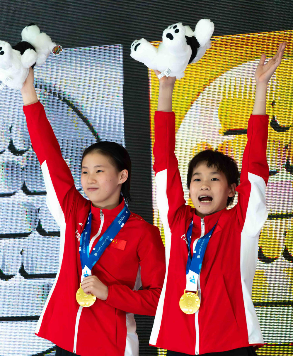 2日,中國跳水隊在2024年跳水世界杯蒙特利爾站比賽中包攬四金,并獲得兩枚銅牌。&emsp;&emsp;3月2日,陳芋汐/全紅嬋(右)在頒獎儀式上。新華社發(劉佳歡 攝) ... [更多詳細]