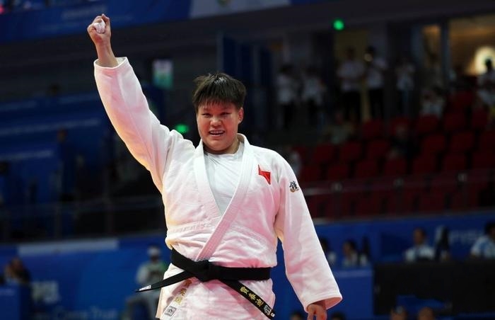 7月31日,在第31屆世界大學生夏季運動會女子柔道78公斤以上級決賽中,中國選手賈春迪擊敗韓國選手PARK Saetbyeol獲得冠軍。圖為賈春迪比賽結束后向觀眾致意。中 ... [更多詳細]