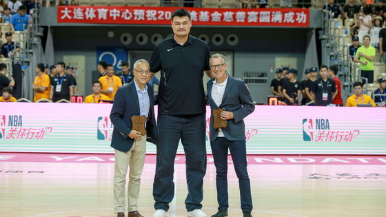 中國(guó)籃球協(xié)會(huì)主席姚明(中)向贊助商頒發(fā)特殊貢獻(xiàn)獎(jiǎng)。2018姚基金慈善賽。新華社發(fā)(王華攝)8月12日,2018姚基金慈善賽,中國(guó)明星隊(duì)以114-97戰(zhàn)勝美國(guó)星銳隊(duì)。首節(jié) ... [更多詳細(xì)]