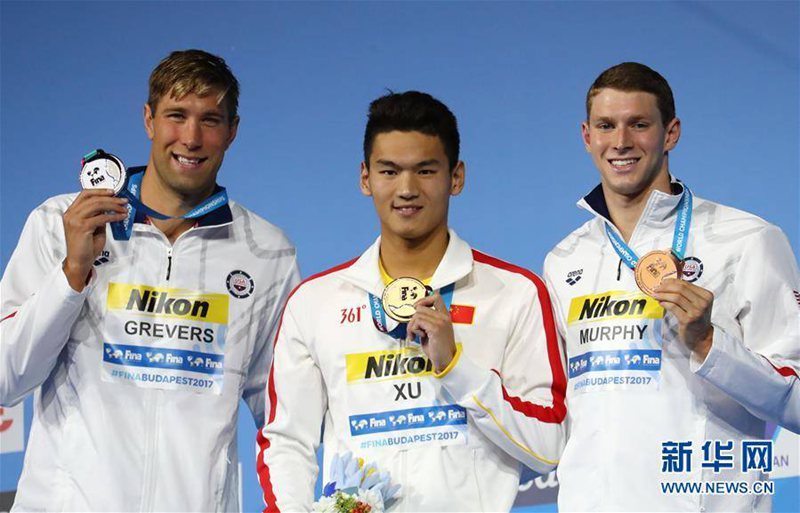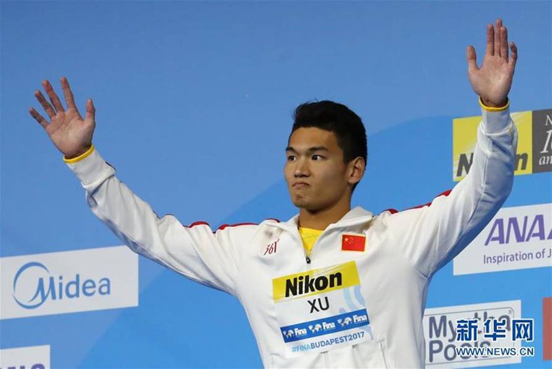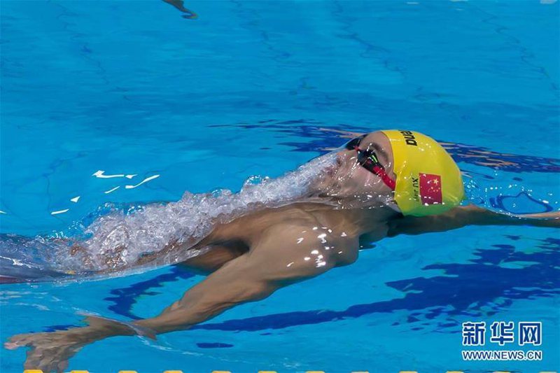 7月25日,中國選手徐嘉余在比賽中。當日,在匈牙利布達佩斯進行的第17屆國際泳聯游泳世錦賽男子100米仰泳比賽中,中國選手徐嘉余以52秒44的成績奪冠。
