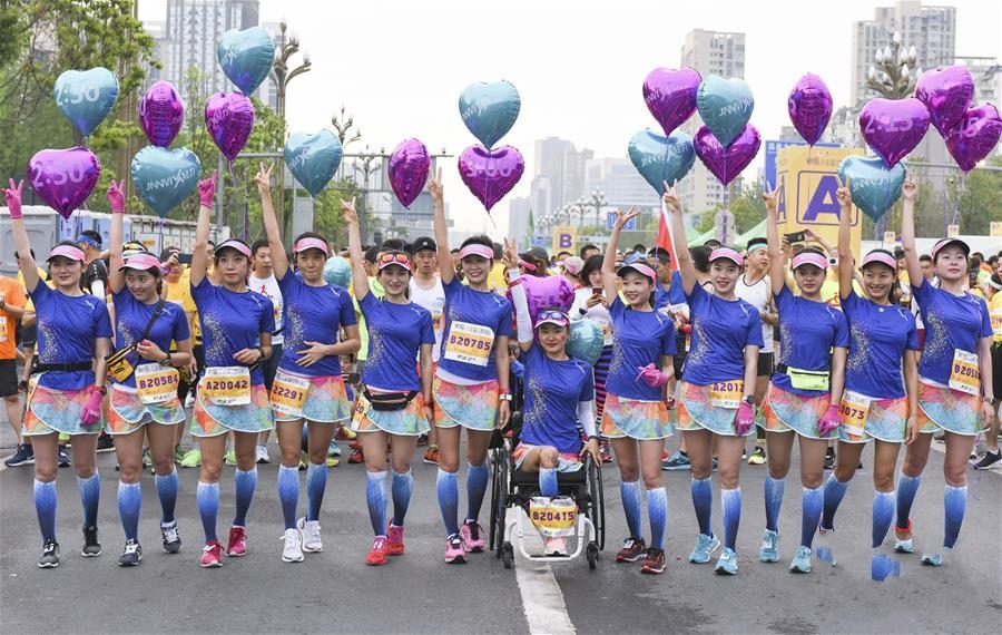 4月21日,志愿者舉著起跑線布帶等待比賽開始。 當日,2019&ldquo;金溫江&rdquo;半程馬拉松賽在成都市溫江區光華大道鳴槍開跑,共有來自11個國家和地區的1.4 ... [更多詳細]