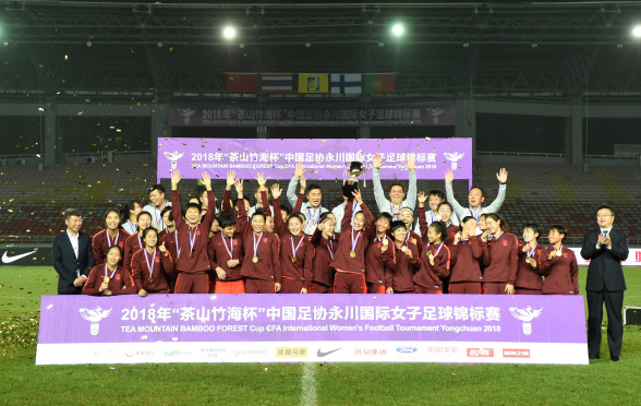 中國女足國家隊在頒獎儀式上慶祝。新華社記者唐奕攝 2018&ldquo;茶山竹海杯&rdquo;永川國際女足錦標賽8日進入最后一個比賽日,當天晚上中國女足對陣老對手泰國女 ... [更多詳細]