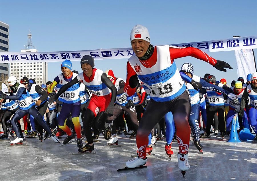 12月25日,參賽選手在全國大眾速度滑冰馬拉松男子組5公里比賽中。 當日,由國家體育總局冬季運動管理中心、中國滑冰協會主辦的2018-2019全國大眾速度滑冰馬拉松 ... [更多詳細]