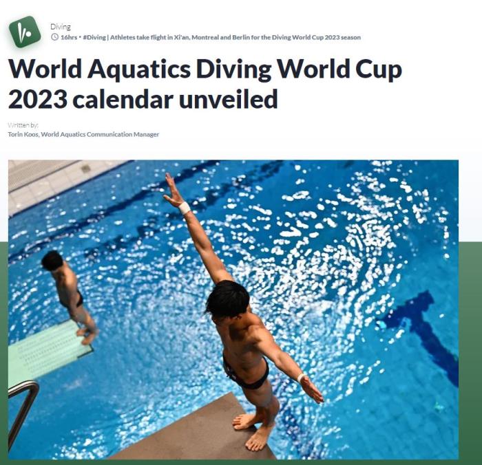 國際泳聯公告截圖。  國際泳聯日前公布了2023年跳水世界杯賽程,中國西安為首站比賽的舉辦地。  國際泳聯在公告中寫道:&ldquo;2023賽季世界游泳跳水世界杯 ... [更多詳細]