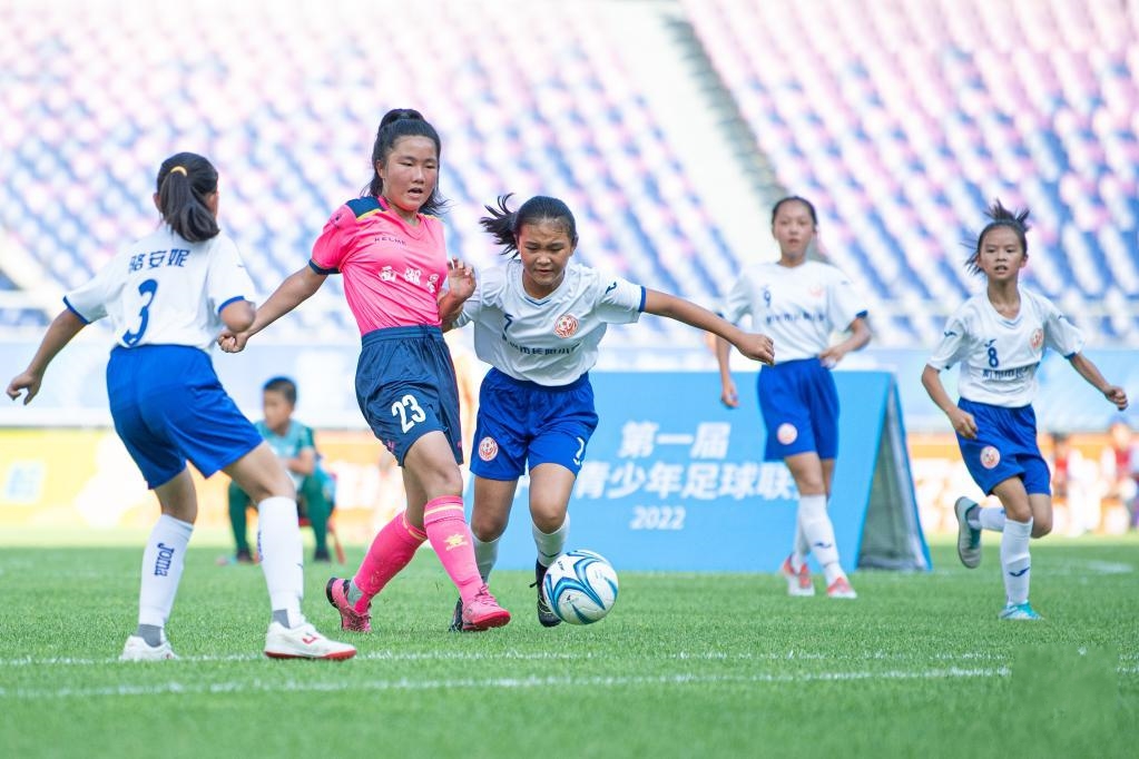 7月10日,在第一屆中國青少年足球聯賽(浙江賽區)男子小學U11組比賽中,杭州濮家小學的小球員(中上)與浙江鴕鳥足球俱樂部的小球員施循韜(中下)爭頂。新 ... [更多詳細]