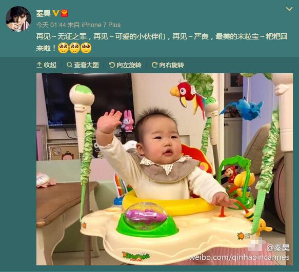 微博截圖2月13日,伊能靜老公秦昊曬出小米粒的照片,照片中,小米粒坐在玩具車上,手舞足蹈,小手胖嘟嘟的,頭發(fā)立起來,十分可愛。秦昊配文:&ldquo;再見~無證 ... [更多詳細(xì)]