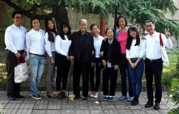 宋平(中)和夫人陳舜瑤(右四)與前來探望的“漂亮中國”人員合影