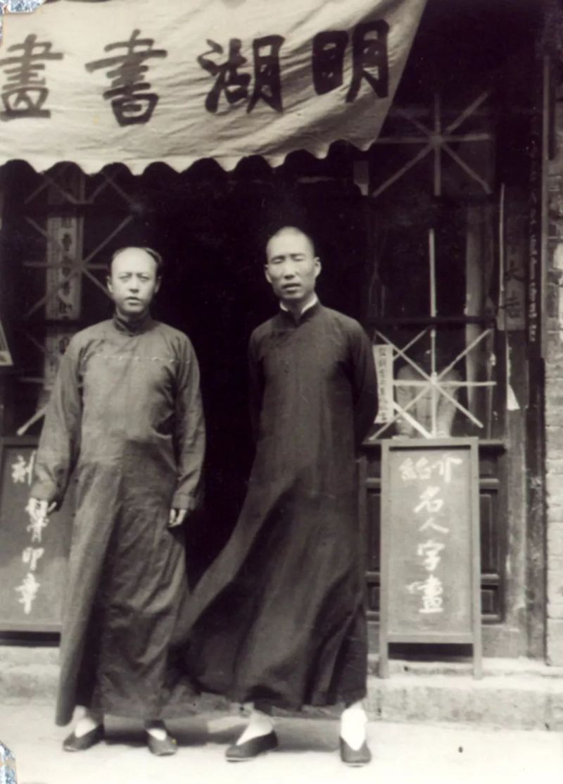 1942年4月2—4日,李苦禪(左)在濟南普利門外青年會舉辦展覽賣畫資助地下抗戰