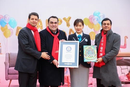 使用了24638個深紅光潤的櫻桃,一個接一個依次緊貼碼放,隨著&ldquo;櫻桃線&rdquo;的延展、彎曲、回轉,勾勒出兩顆&ldquo;手牽手&rdquo;相連的巨大櫻桃圖案 ... [更多詳細]