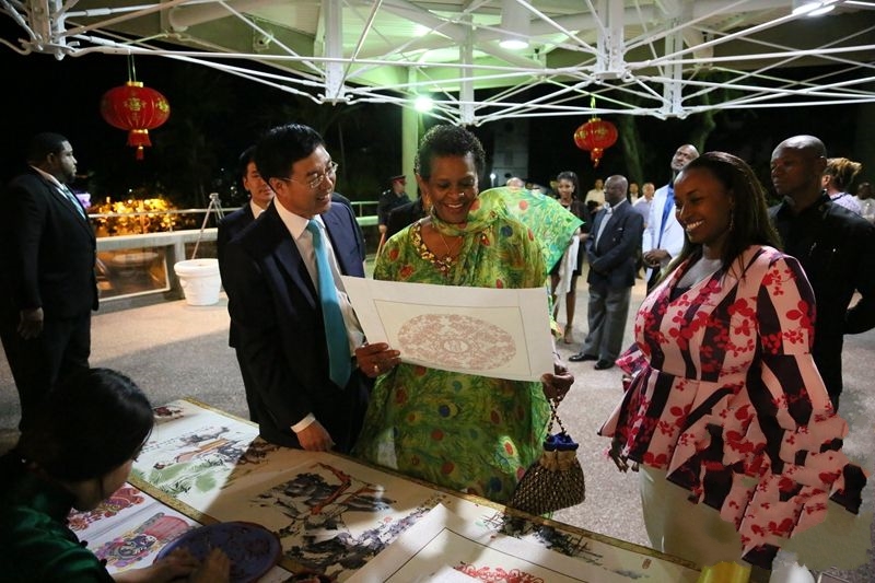 當地時間1月22日,2019年&ldquo;歡樂中國年&middot;魅力京津冀&rdquo;活動在東加勒比海島國巴巴多斯正式拉開序幕。圖為我駐巴巴多斯大使延秀生陪同巴巴多斯總督桑 ... [更多詳細]