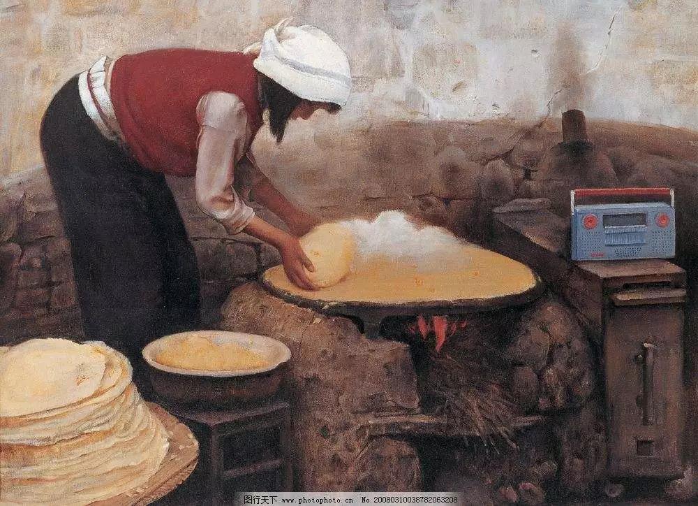 路過陌生的村莊,女娃們會拿著竹耙把散落在路邊的麥草耙干凈。一部分會堆在麥場上,那是烙煎餅的好柴火,火苗不大不小煎餅才恰到好處。