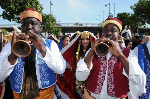 2月11日,在突尼斯首都突尼斯市中心,身著突尼斯南部泰塔溫地區傳統服飾的人們演奏傳統音樂。 ... [更多詳細]