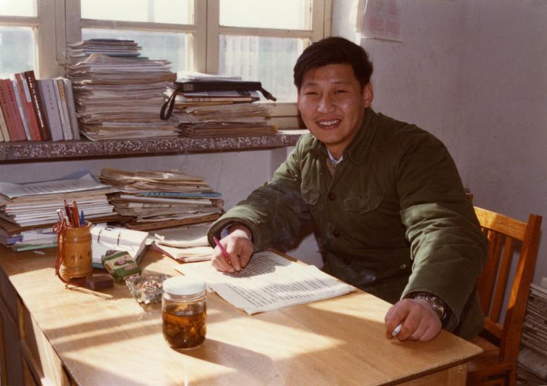 1983年,在河北正定辦公室里的習(xí)近平。 新華社發(fā)