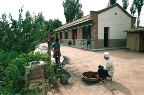 寧夏涇源縣蘭大莊農(nóng)民蘭旭朋在移民莊蓋起了新瓦房(資料照片)。