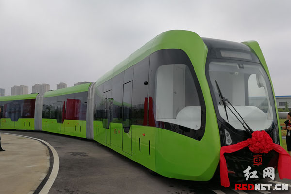 2016年6月2日,由中車株洲電力機車研究所有限公司(以下簡稱“中車株洲所”)研制的一種名為“智能軌道快運系統”(以下簡稱“智軌”)的全新交通產品在株洲首次亮相。同期,株洲市人民政府宣布,由株洲市匯聚各方資源和力量,為智軌列車量身定做的全國首條智能軌道快運系統示范線路也將正式進入實質規劃階段,根據規劃目標,該條示范線有望在2018年投入商業運營,這將大大保持和提升株洲市在全國軌道交通領域的地位。圖為虛擬軌道列車外形圖,智軌列車長達30多米,被稱為馬路上的“巨無霸”。