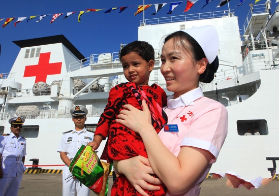 2013年8月22日,chin來到和平方舟醫院船。琚振華攝4月23日,是中國海軍成立68周年紀念日。就在此時,徐州艦編隊正在西太平洋正開展實戰化訓練;第25批護航編隊正在亞 ... [更多詳細]