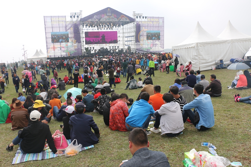 在音樂搖滾現場,電子舞臺、主舞臺燈光四射,響徹四方,歌手鄭鈞、馬頔及木推瓜、馬賽克、廢墟、曳取、神話接力、德烏禾樂隊、海龜先生、泰然阿修羅、幸福大街等數十支樂隊激情表演,與來自貴州、云南、湖北、四川、重慶等地的數萬名游客在烏蒙云端之巔盡情舞動、盡情狂歡、瘋狂撒野,嗨個不停,烏蒙大草原成為了音樂的天堂。