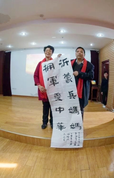 沂蒙兵媽媽擁軍協(xié)會(huì)還得到了王俊慶、徐仰平、徐以松劉乃沂、劉乃義、胡發(fā)釗等老同志的大力支持,知名人士女子水晶樂坊、大衣哥朱之文、草帽姐徐桂花、金波、王紅蘭、卞小貞、魏金棟、王迅、來喜、付高峰、劉大成、旭日陽剛、好弟、王海地、魏震、山楂妹張?jiān)聠獭⑼跣』ⅰ⒍螣挕O美貞、云飛、玖月奇跡、陽光等發(fā)來賀電及祝賀視頻。王飛躍代表中國人民解放軍總參謀部書法院院長王學(xué)嶺、潘明信代表山東美協(xié)會(huì)員周先明向大會(huì)贈(zèng)字。