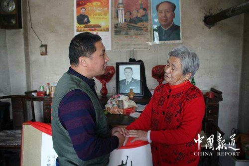 意。兒子犧牲后,國家所有的賠償款,老人一分錢都沒留,全部給了兒媳和孫子。依然心系國家、擁護政府,表示決不給政府添麻煩,并對黨和政府的關心和照顧,非常感激。據苑莊鎮民政辦主任張正廣介紹,英雄王正景的父親王傳勝、母親尋桂榮老人,都享受著烈士家屬撫恤金的待遇;今年春節,縣委縣政府還專門看望慰問了老人,并送去了3000元慰問金。老人尋桂榮拉著會員們的手親切地交談著。協會詳細地詢問了老人的身體和生活狀況,表示協會將一如既往地做好關愛烈軍屬工作,讓英雄流血不流淚,讓烈屬光榮不傷心。協會的到來,尋桂榮老人倍感欣慰。