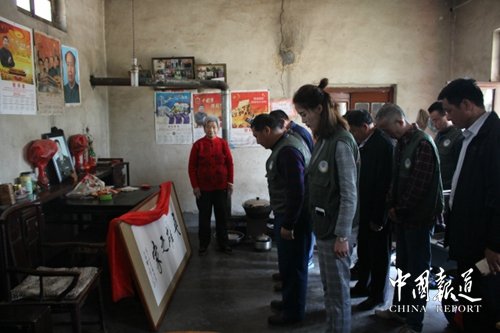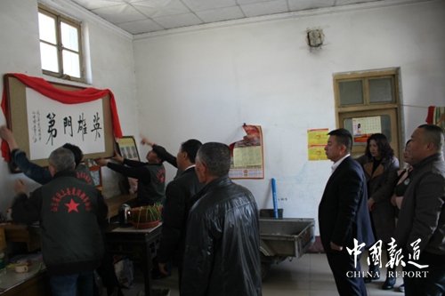 協會會員和鎮村干部共同向王正景烈士遺像鞠躬