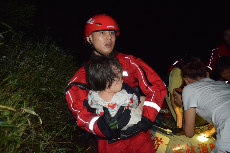 19時(shí)38分,在抵達(dá)村口后,由于村中道路多處被水淹沒(méi),經(jīng)過(guò)村民幫忙引導(dǎo)救援官兵順利到達(dá)村中。到場(chǎng)后,救援官兵偵查發(fā)現(xiàn):村中已是一片汪洋,河水已漲二樓,村中時(shí)不時(shí)傳來(lái)房子倒塌的隆隆聲。隨后,救援官兵在村民的引導(dǎo)駕駛橡皮艇攜帶救生器材及食物進(jìn)入村中搜救被困在家中的村民。在搜救過(guò)程中,救援官兵在村民的引導(dǎo),在洪水中七拐八繞向村中前進(jìn)。經(jīng)過(guò)官兵長(zhǎng)達(dá)6個(gè)小時(shí)的努力,成功將村中被困的16名村民轉(zhuǎn)移至安全區(qū)域。