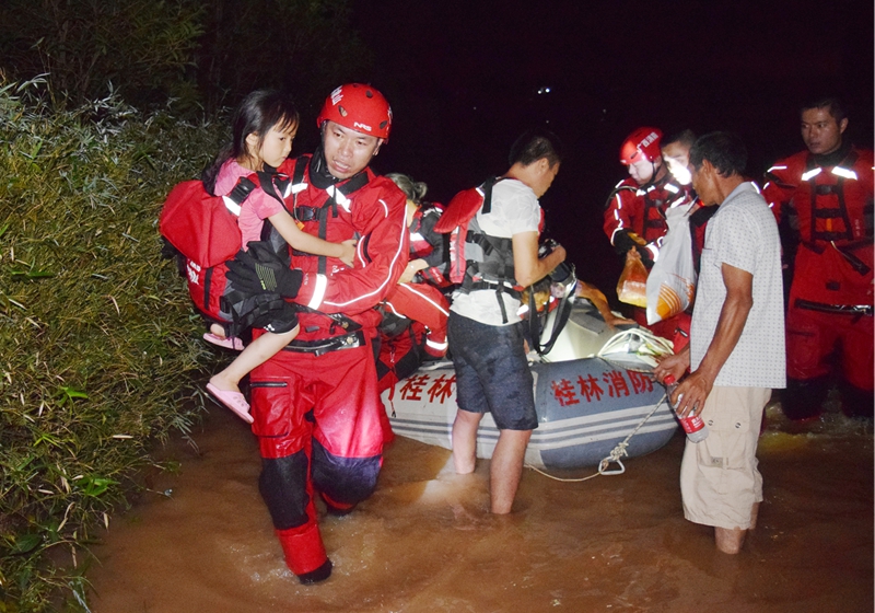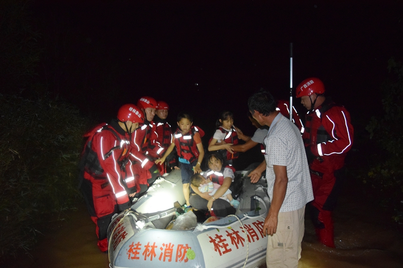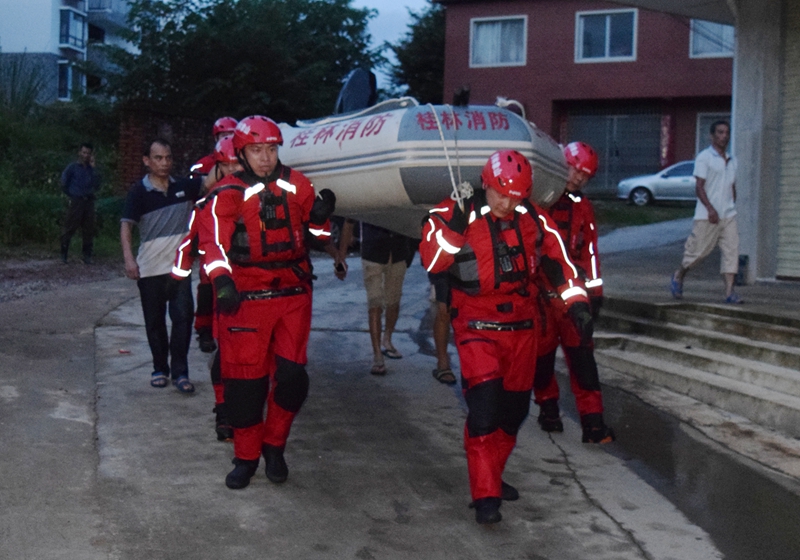 2017年7月2日下午17時(shí)50分,象山中隊(duì)接到報(bào)警:廣西桂林市雁山區(qū)雁山鎮(zhèn)蔣家壩有多家村民被圍困,村中部分老房子因洪水浸泡已多處倒塌。警情就是命令,接到報(bào)警后,中隊(duì)官兵在支隊(duì)司令部的帶領(lǐng)下前往處置。