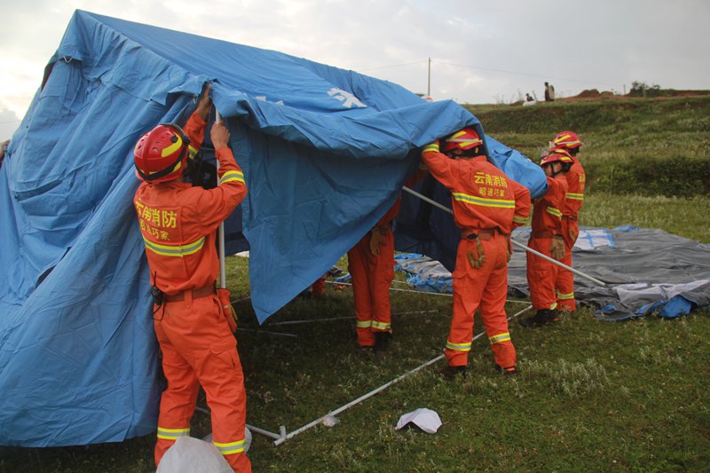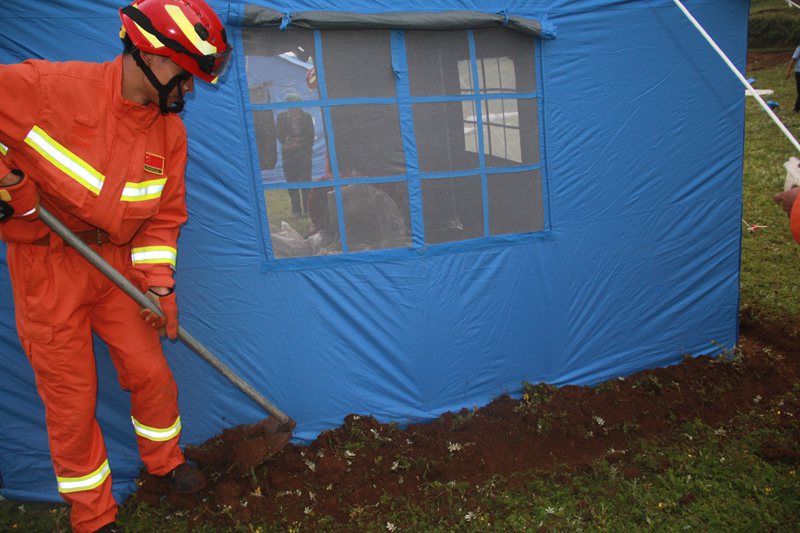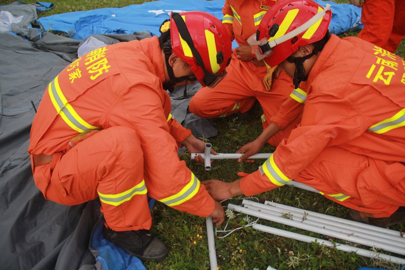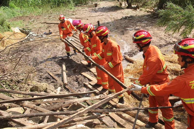 14時40分,消防救援官兵到達大巖洞社區(qū)附近時發(fā)現,暴雨導致前往受災現場的路段多處塌方、滑坡等,車輛不能前行。指揮員果斷下達徒步前進命令,大隊官兵佩戴個人防護,攜帶相關器材,徒步進入現場。15時02分到達現場,受災群眾已經被當地鄉(xiāng)鎮(zhèn)救出,經過短暫的研究部署,指揮員立即下達命令:第一小組負責警戒疏散人群,轉移群眾至安全地帶,第二小組分批次搬送救援物質,確保群眾的日常生活正常。群眾轉移到安全地帶之后,經過3個多小時的努力,救援隊員在指揮員的迅速組織下,搭建完帳篷,分發(fā)完物資,安置好受災群眾。20時22分,救援行動結束。20點28分,救援官兵撤離災區(qū)。8月3日,00時04分,全體官兵安全歸隊。至此,整個救援行動圓滿結束。