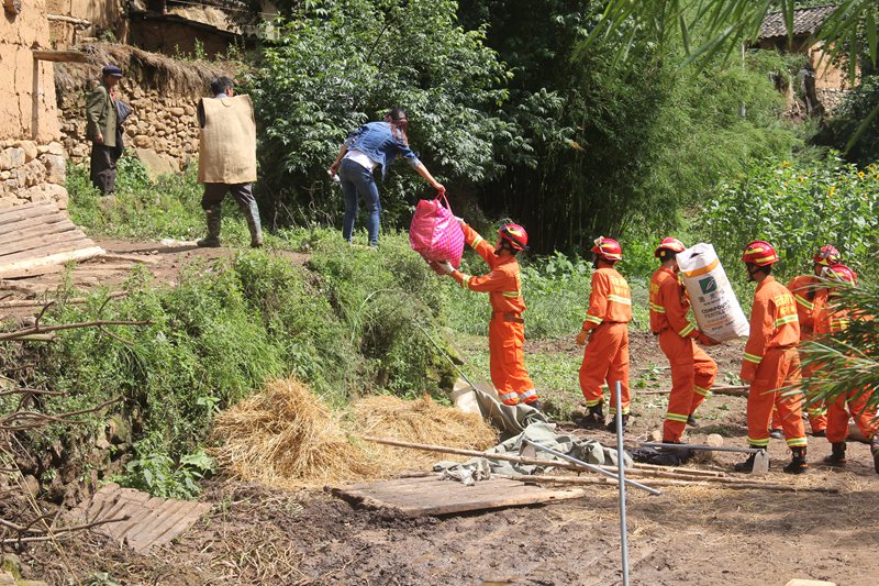 8月1日21時,巧家縣出現特大暴雨天氣,老店鎮(zhèn)、崇溪鎮(zhèn)、中寨鄉(xiāng)遭受不同程度災害,8月2日10時20分,云南巧家消防大隊接到縣公安局指揮中心調度稱,老店鎮(zhèn)大巖洞社區(qū)發(fā)生山體滑坡,有房屋受損倒塌,4人被埋壓失蹤,情況十分危急,請求消防大隊官兵前往救援。接到命令后,巧家消防大隊迅速出動2車12人火速趕赴事發(fā)地點。