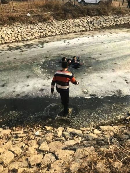 牛恩利忍著寒冷的冰水,一個一個把三個孩子向岸上托。大約過了20分鐘,終于將三個孩子救上了岸。據悉,三個孩子都是走親戚的,幾個孩子結伴去水庫的冰上玩耍,沒想到冰面破碎,發生了驚險的一幕。