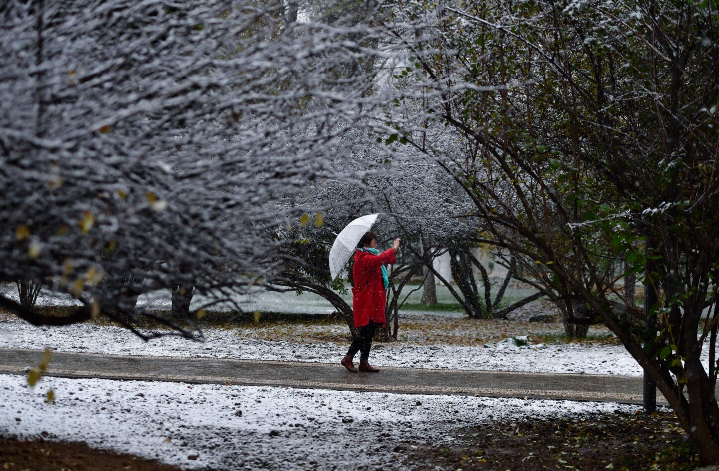 10月31日,在青海省西寧市,市民在拍攝雪景。新華社記者張龍攝上午還是晴日當空,下午就氣溫驟降。11月12日,來自西伯利亞的強冷空氣影響我國大部分地區。中央氣 ... [更多詳細]