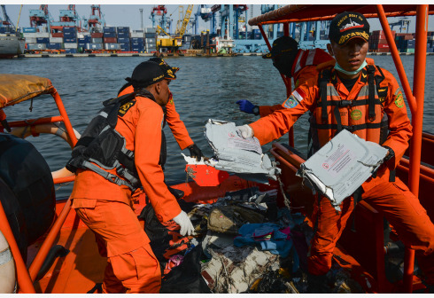 10月29日,在印度尼西亞雅加達,搜救人員展示失事客機的殘骸。 新華社發(維里攝)印度尼西亞國家搜救局官員29日說,失事的印尼獅子航空公司客機上的189人恐怕已 ... [更多詳細]